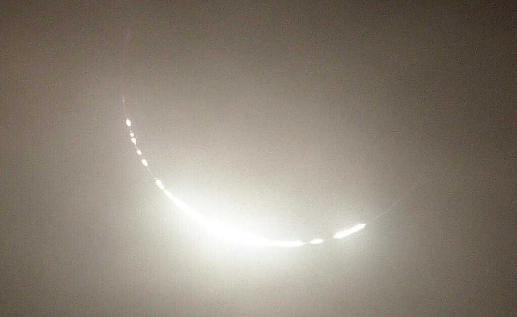 Now, this will amaze you! Out of the total blackness of the eclipse, the sun's Corona -- the outer atmosphere of the Sun -- will become visible. Normally we can't see the corona because of the brilliance of the sun. A total eclipse, when the moon's shadow completely covers the sun's surface, provides us with a brief, rare glimpse of the solar atmosphere. Watch for an amazing display once the eclipse is total (around 1.24).